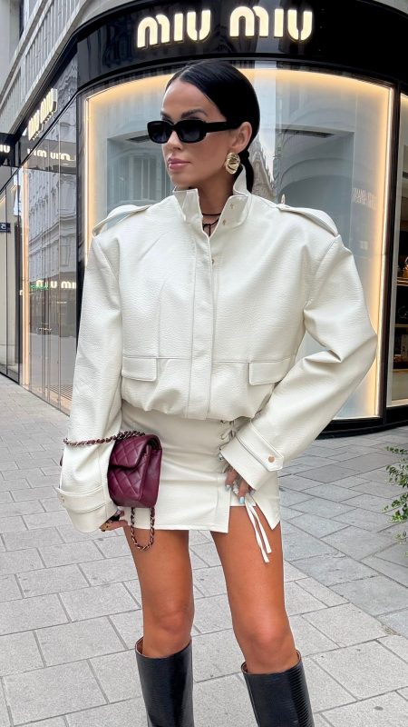 Długość short, gladkie wykończenie. Poduszki na ramionach.