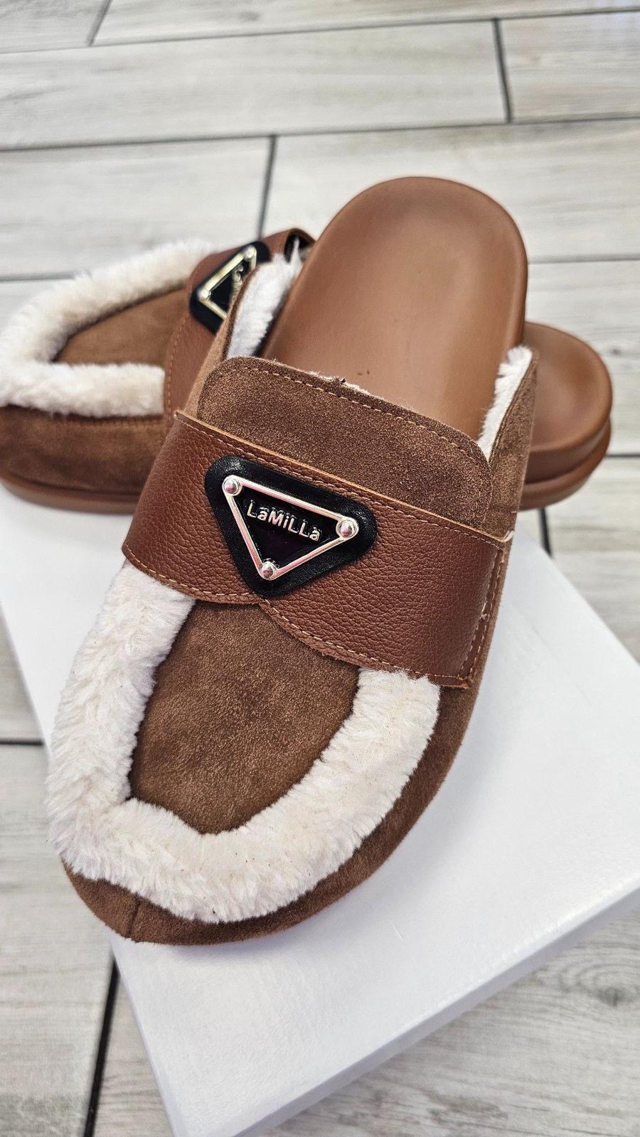 Klapki Prado czekoladowe z futerkiem 369,00 zł