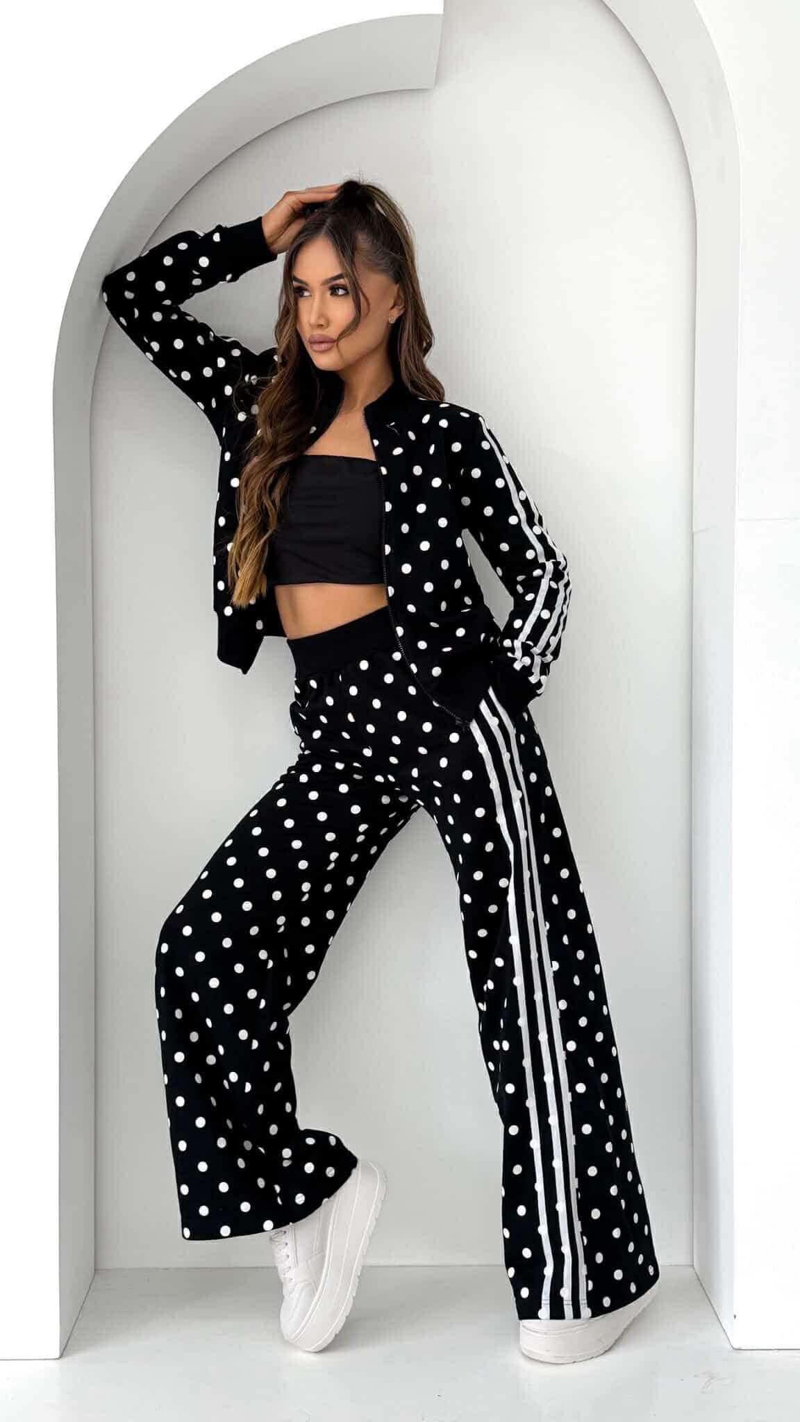 Komplet dresowy Unique w grochy czarny