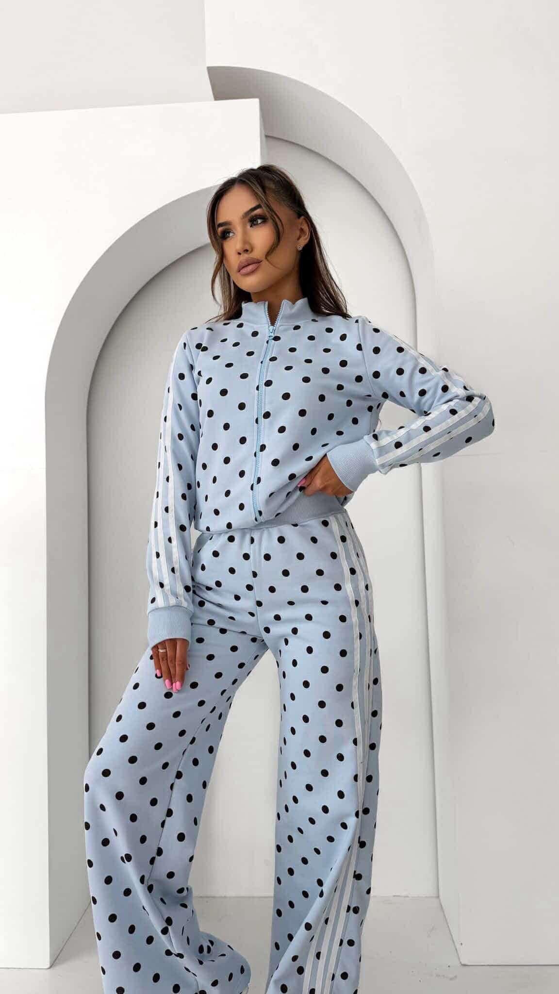 Komplet dresowy Unique w grochy niebieski
