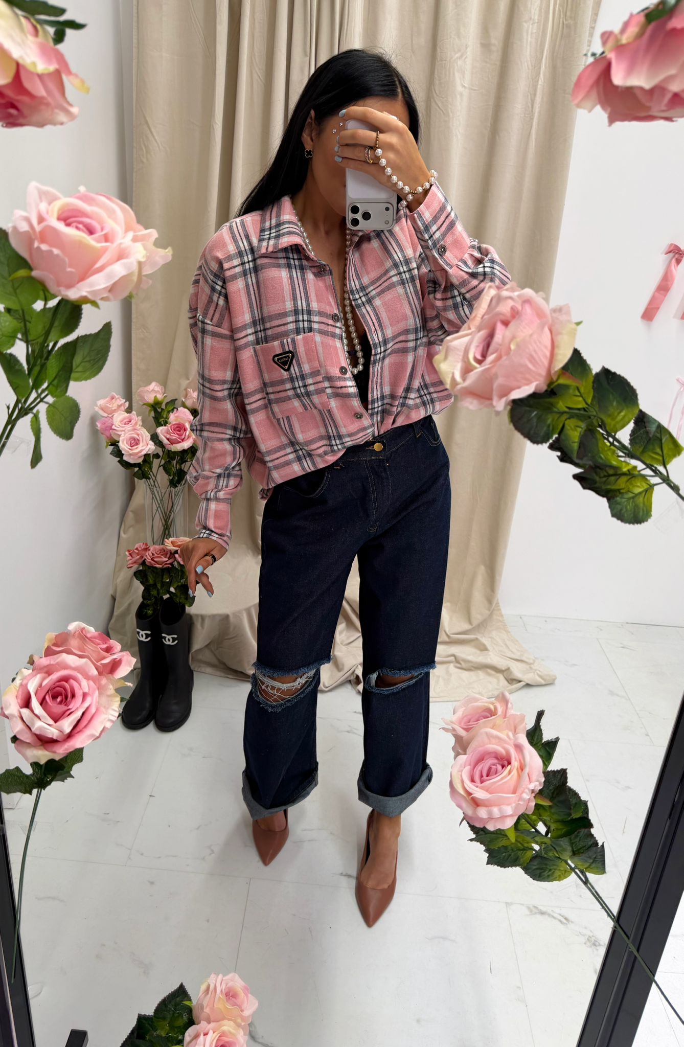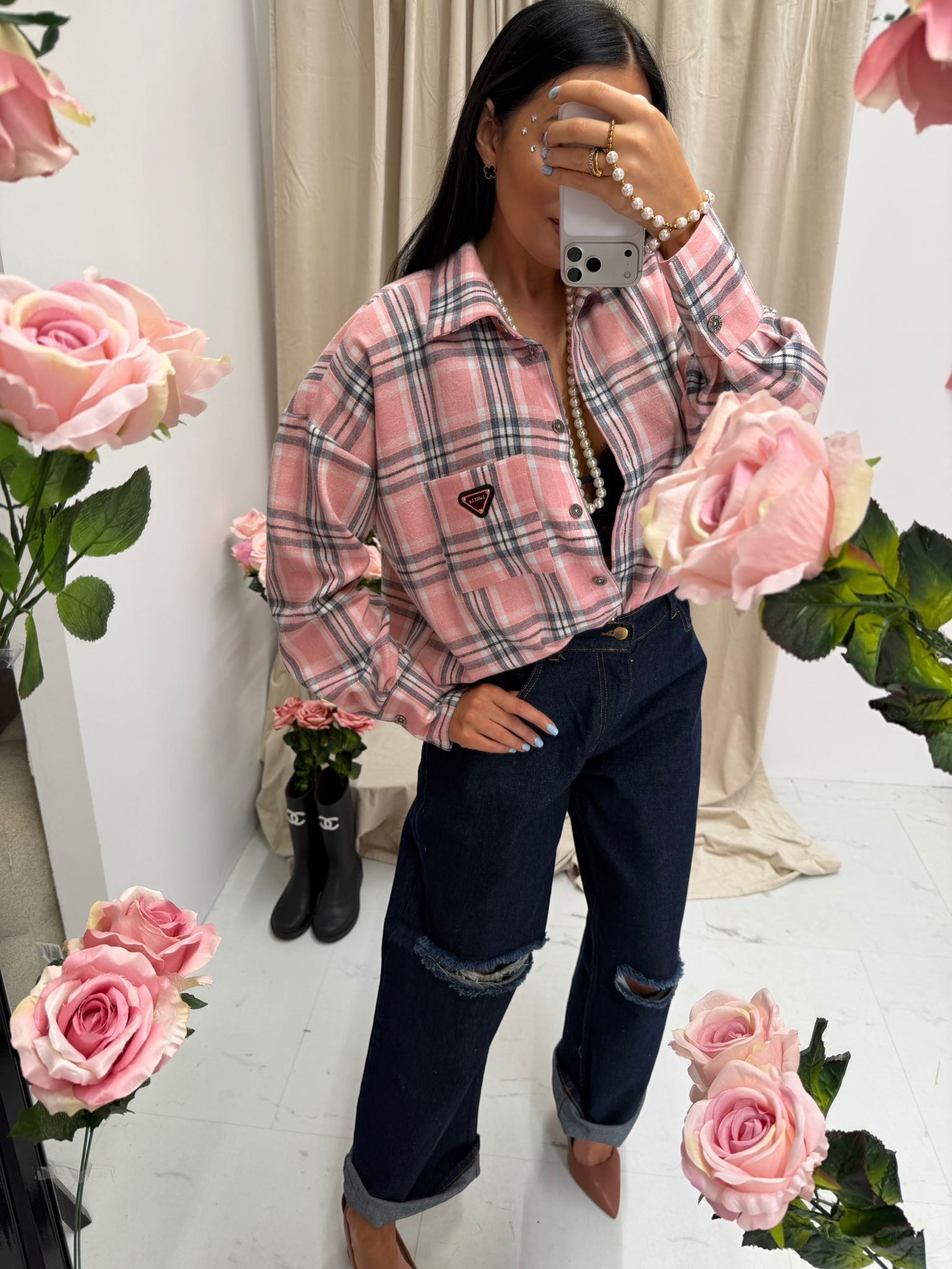 Koszula Lauren w kartę pudrowa